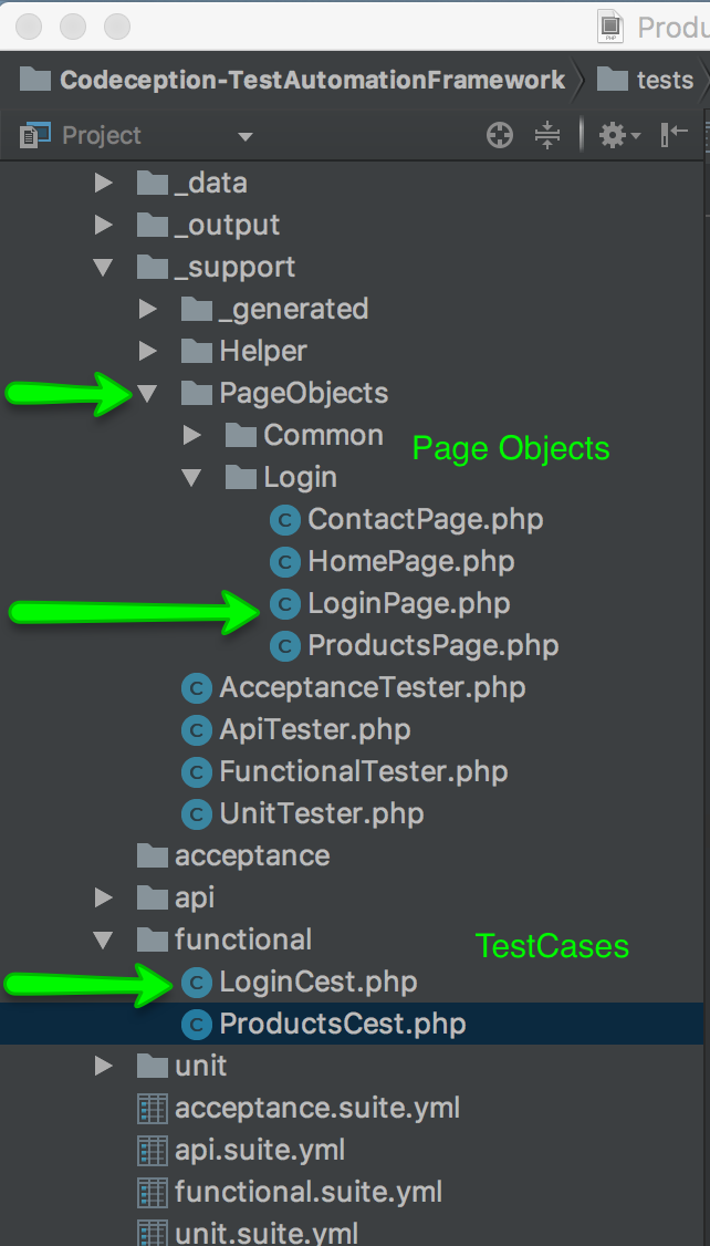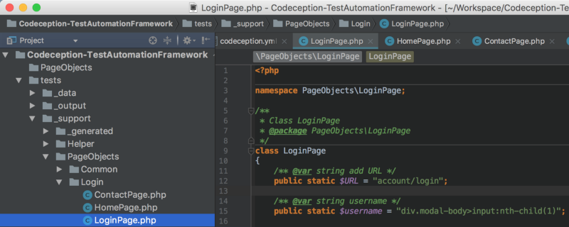 نکته: میتوانید کلاس TestCase را در پوشه Tests ایجاد کرده و آن را براساس تستی که دارید نامگذاری کنید. مهم نیست که از چه IDE استفاده میکنید. تنها نکته مهم این است که شما کلاس شئ برگه را در کلاس تستها فراخوانی میکنید، بنابراین وقتی اسکریپت اجرا شود، المان Locator مربوطه دریافت میشود.