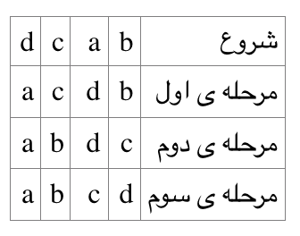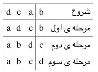 فرض میکنیم آرایه ی s دارای رشته های dcab باشد و ما میخواهیم آنرا به این روش مرتب نماییم...