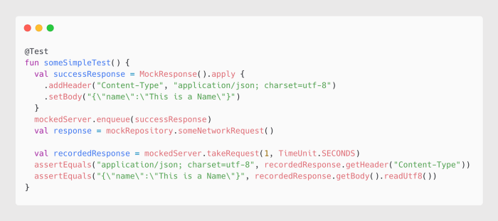 ما برای این تست دو بخش مهم داریم، قسمت اول MockWebServer و قسمت دوم MockResponse است.