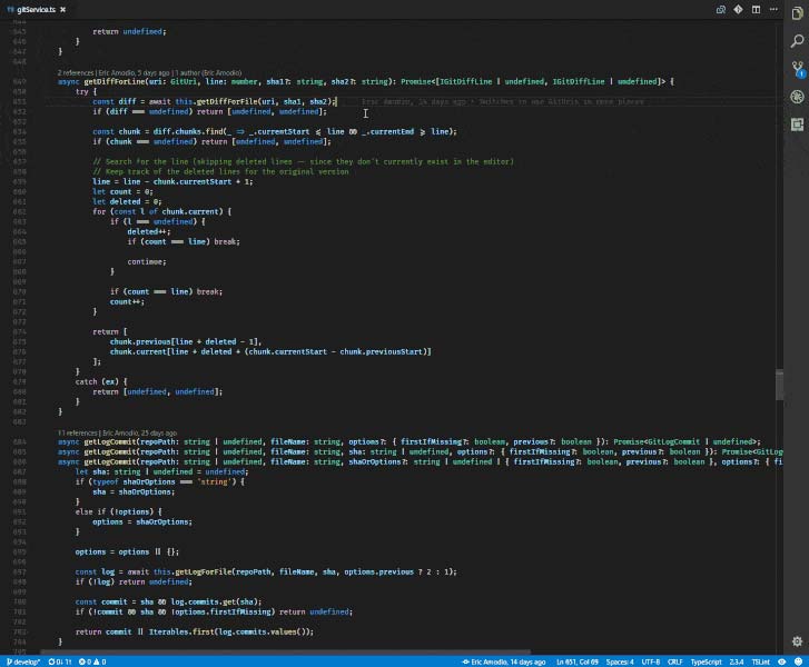 گیت یکی از محبوبترین ابزارهایی است که توسط توسعهدهندگان در سرتاسر جهان استفاده میشود. مدیریت گیت از طریق IDE بسیار سادهتر و سریعتر از کار با محیط خط فرمان است. پنل گیت در داخل VSCode به شما اجازه میدهد که کارهایی مانند به Stage بردن فایلها، کامیت کردن، بازنشانی تغییرات و چند مورد دیگر را به سادگی انجام دهید. در کنار این ابزار، افزونه GitLens نیز معرفی شده است که به شما قابلیتهای بسیار بیشتری را در استفاده از گیت میدهد. با استفاده از این افزونه میتوانید هر خط کد یک پروژه را با دقت بسیار بیشتری در جهت شخصی که کامیت کرده، زمان و محتوای آن مشاهده کنید.