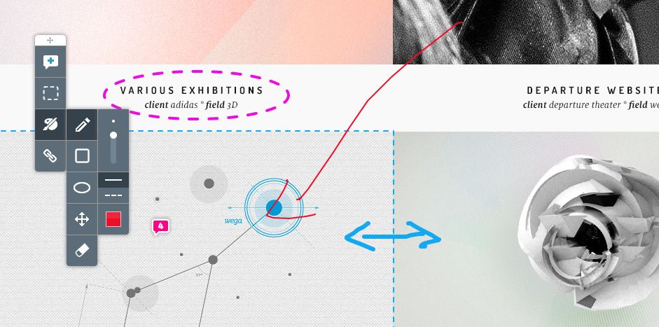 شما می توانید کارتان را مستقیما روی صفحه اصلی Prevue یا Red pen آپلود کنید، لینک ها را با مشتریان و اعضای تیم به اشتراک بگذارید و مستقیما روی طرح کامنت بگذارید.