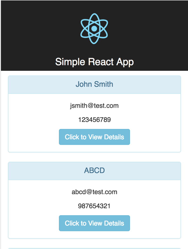 این برنامه لیستی از مشتریان را نمایش میدهد. وقتی که یک مشتری انتخاب میشود، برنامه لیستی از جزئیات درباره او نمایش میدهد. این یک برنامه تک صفحهای (SPA = Single Page App) است. React مناسبترین مورد برای این نوع برنامه میباشد. برنامههای تک صفحهای همه چیز را در داخل یک صفحه تکی نمایش میدهد.