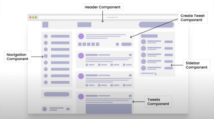 به عنوان مثال بیایید نگاهی به Twitter بیندازیم. این برنامه میتواند از کامپوننتهای زیر تشکیل شده باشد: