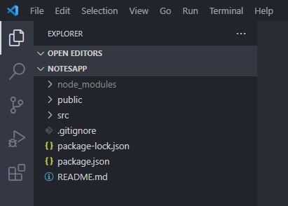 با این کار پروژه ما ایجاد میشود که آن را "notesapp" نامیدهایم. ضمنا یک پوشه مستقل نیز ایجاد میکند، بنابراین نیازی نیست ابتدا یک پوشه اصلی بسازیم.