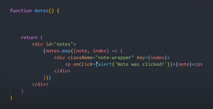 فرض کنید در یک برنامه یادداشتنویسی، کامپوننت Notes را به عنوان یک تابع ایجاد میکنیم (همچنین میتوانیم آن را با استفاده از یک کلاس نیز بسازیم). در تابع خود میتوانیم نوعی منطق مانند گرفتن مقداری داده را قبل از بازگرداندن HTML لحاظ کنیم. سپس این تابع اکسپورت میگردد و میتواند بعدا در یک کامپوننت یا صفحه دیگر ایمپورت شده و مجددا استفاده شود.