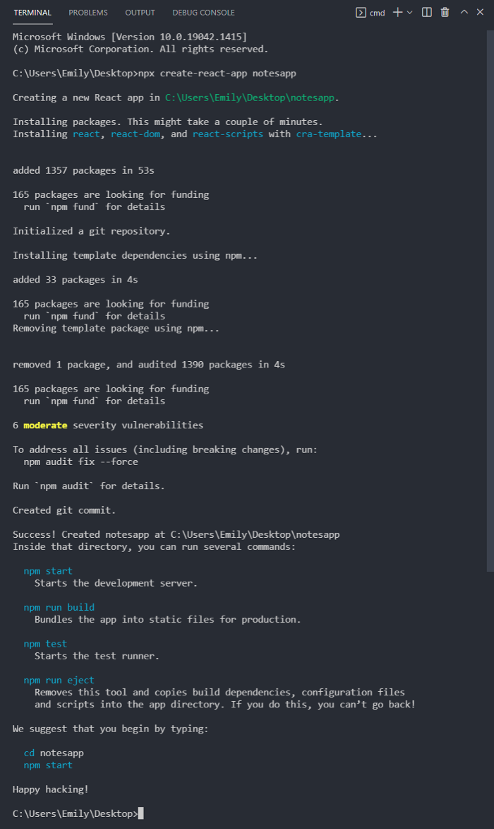npx create-react-app notesapp