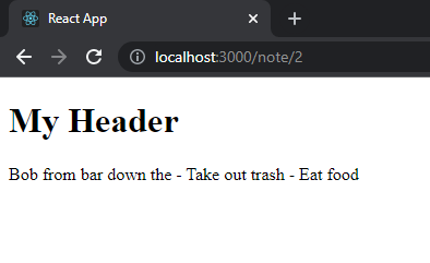 بهتر است یک مسیر پویا داشته باشیم که دادههای مخصوص یادداشتی را که روی آن کلیک میکنیم برگرداند. میتوانیم این کار را با ارسال id هر یادداشت به مسیر از طریق پارامتری که تعریف میکنیم انجام دهیم. در اینجا آن را id: مینامیم.