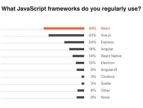 و پنج موردی که React را انتخاب کردهاند، در تصویر زیر میبینید: