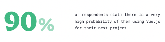 با بررسی بیش از 1500 توسعه دهنده و CTO در سالهای 2020 و 2021 متوجه شدیم که 90 درصد آنها قصد دارند از Vue.js در پروژههای بعدی خود استفاده کنند. در سال 2019 حدود 11 درصد از پاسخ دهندگان بیش از دو سال از این فریمورک استفاده میکردند.