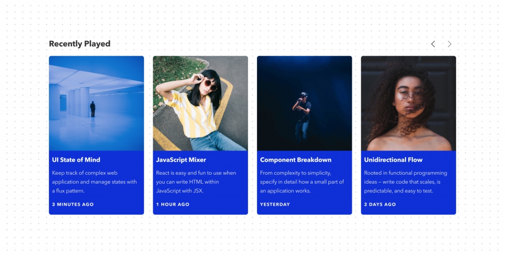 this.props.title، this.props.discription و this.props.lastPlayed، همان فضاهای خالیای خواهند بود که کامپوننت آلبوم میتواند پر کند. اینها propهایی هستند که به کامپوننت منتقل میشوند. این یعنی کد <Album title=”Firehouse Weekend”: description=”Learn to code a web app built with HTML, CSS, and ruby in hackathon style weekend.” lastPlayed=”A minute ago” /> در بالا میتواند به این HTML گسترش داده شود: