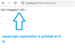 میبینید که عبارت {display} جایگزین نشده است. ریاکت نمیداند وقتی عبارتی در داخل فایل js. استفاده میشود باید چه کاری انجام دهد.