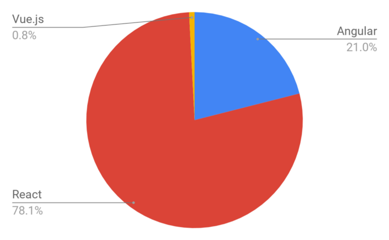 فریموورکهای JavaScript با سرعتی بسیار بالایی در حال توسعه هستند، که یعنی امروزه نسخههای در حال بروز شدن Angular، ReactJS و بازیکن جدید، یعنی Vue.js را داریم. ما تعداد زیادی از موقعیتهای باز جهانی را که نیازمند دانش در زمینه یک فریموورک مشخص هستند را تجزیه و تحلیل کردیم. ما indeed.com را به عنوان منبع خود قرار دادیم و بر حسب ۶۰ هزار فرصت شغلی، نتیجه زیر را به دست آوردیم.
