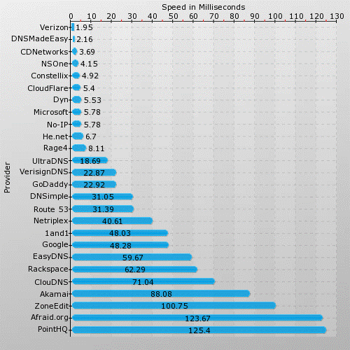 زمان انجام این مرحله بستگی به سرعت ارائه دهنده DNS کاربر دارد. اگر کاربران متوجه شوند که این موضوع به اندازه کافی سریع انجام نمیشود، شاید زمان آن باشد که به یک ارائه دهنده خدمات DNS سریعتر مراجعه کنند. برای کمک به انتخاب یک ارائه دهنده DNS، میتوانید یک گزارش مقایسه سرعت DNS، مانند این گزارشی که ما از SolveDNS، گردآوری کرده ایم را الگو قرار داده و بر اساس آن تصمیم گیری کنید: