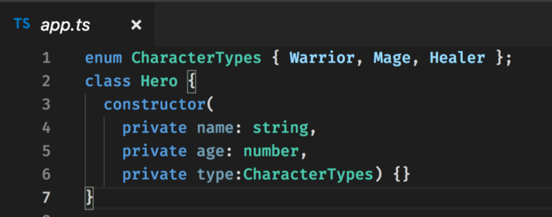 const hero = new Hero(‘hero’, 18, CharacterTypes.Healer);