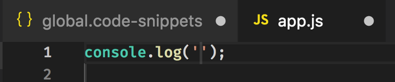 همانطور که پیشتر بیان کردیم، بیایید یک فایل global بسازیم؛ پس گزینه New Global Snippets file، یا دومین گزینه از بالا را انتخاب کنید. بیایید آن را global بنامیم. نتیجه نهایی باید چنین چیزی باشد: