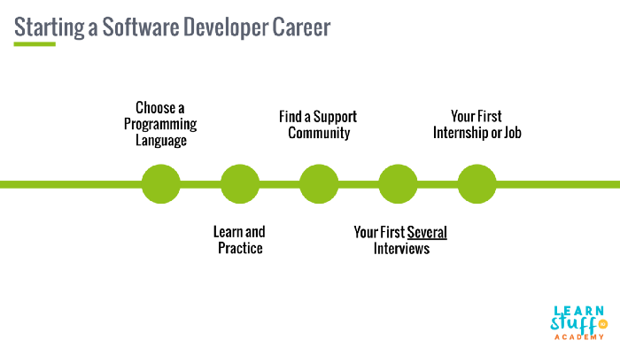 یادگیری را در اولویت قرار دهید. از شکست خوردن و بازخورد گرفتن نترسید. کنجکاو باشید. ابتدا زبان برنامه نویسی را یاد گرفته و درک کنید. وقتی استخدام شوید، فرصت کار کردن روی پروژههای بزرگ را خواهید داشت. در صورت عدم موفقیت در یک مصاحبه، نباید دلخور شوید. شاید اگر بیشتر یاد بگیرید، بتوانید دفعهی دیگر آن شغل را بدست آورید. برای شرکت در کارآموزی و درخواستهای شغلی منتظر دانستن همه چیز نمانید، چون هرگز نمیتوانید همه چیز را بدانید. خیلی نخوانید، بیشتر درک کنید. اجتماعی باشید و تجربیات خود را به دیگران به اشتراک بگذارید.