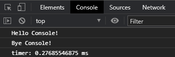 هر دو متد در کنار یکدیگر استفاده میشوند. هر زمان که بخواهیم از زمان صرف شده توسط یک بلوک یا یک تابع باخبر شویم، میتوانیم از متدهای ()time و ()timeEnd استفاده کنیم. هر دوی این توابع یک رشته را به عنوان پارامتر در نظر میگیرند. برای اندازه گیری زمان اطمینان حاصل کنید که از رشته یکسانی برای هر دو تابع استفاده کردهاید.