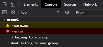 این متدها به ما اجازه میدهند تا محتویات را در یک بلوک جداگانه گروهبندی کنیم و باعث میشود که تورفتگی داشته باشد. دقیقاً مانند ()time و ()timeEnd نیز برچسبی با همان ارزش را میپذیرند. همچنین میتوانید گروه را گسترش داده و فروپاشی کنید.