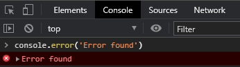 این متد هنگام تست کد مفید است و برای ورود خطاها به کنسول مرورگر استفاده میشود. به طور پیش فرض پیام خطا با رنگ قرمز مشخص میشود.