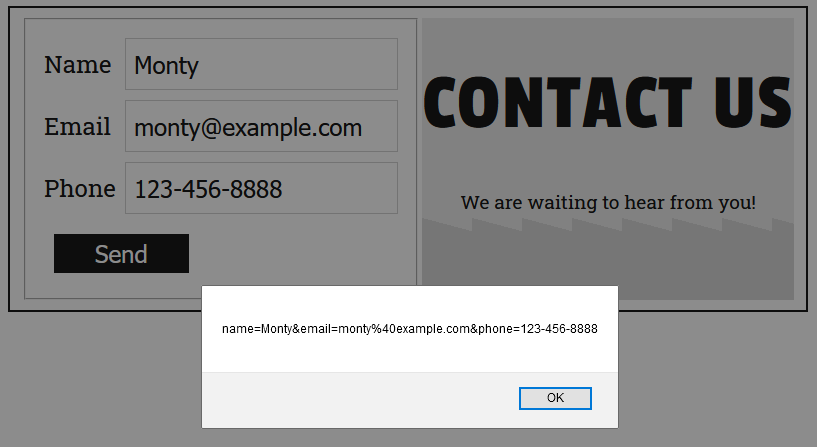 ما در این مثال یک فرم تماس ساده با نام، ایمیل و شمارهتلفن داریم که با استفاده از توابع jquery، همه فیلدها را بدون رفرشکردن صفحه به یک اسکریپت PHP ارسال میکند.