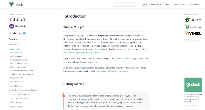 سند خوب فراهم شده برای فریموورکهای Frontend، به همراه یک codebase خوب.