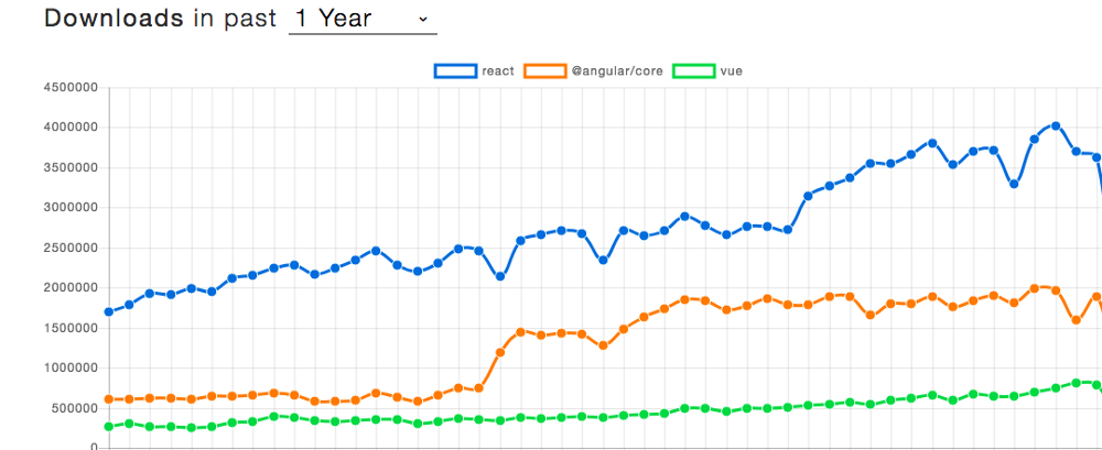 بررسی وضعیت JavaScript در سال ۲۰۱۹، مورد تقاضاترین فریموورکهای ۲۰۱۹ را به همراه فریموورکهای آزمایش معروف مانند Jest، Mocha و Karma لیست کرد.