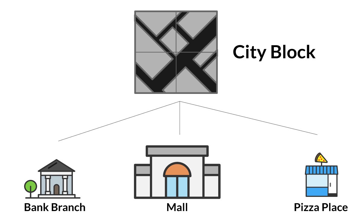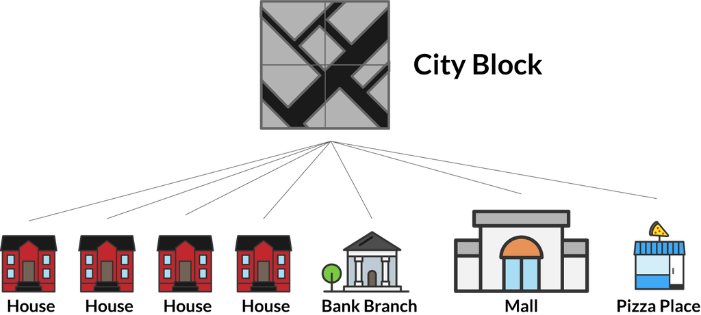 بیایید تصور کنیم که شما مسئول طراحی یک محله جدید برای یک شهر هستید. این محله باید دارای چند ساختمان مسکونی، چند رستوران، شعبه بانک و مرکز خرید باشد.