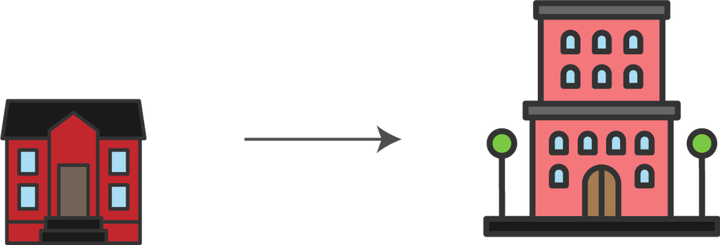 در اینجا یک مثال دیگر میزنیم. بگذارید بگویم که محله شما درحال رشد است. این بدان معنی است که ساکنان ثروتمندتر در حال نقل مکان به این محله هستند و خانههای گرانتری در حال ساخت است. برخی از خریداران تصمیم میگیرند با خرید خانهای قدیمی، خانه را تخریب کنند و به جای آن آپارتمانهای شیک بسازند.