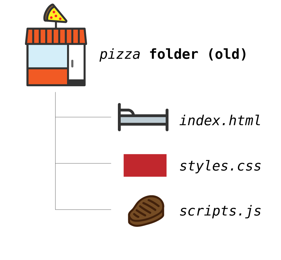 فایلهای CSS و JavaScript به سادگی، HTML را تغییر میدهد. و باید به HTML لینک شوند. به همین دلیل است که در نمودار بالا، خود پوشه یکسان است. اما فایل HTML و کدی که آن را به پروندههای دیگر پیوند میدهد متفاوت است.