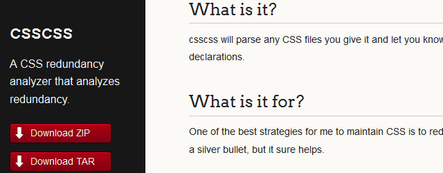 Csscss ابزاری مناسب برای افرادی است که می خواهند افزونگی را در کدهای سی اس اس خود از بین ببرند. این افزونگی می تواند به دلیل تکراری بودن دستورات صورت بگیرد. برای اطلاعات بیشتر و استفاده از آن می توانید به این لینک مراجعه کنید.