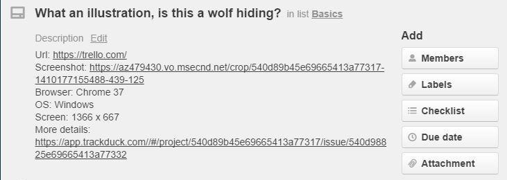 یکپارچه سازی با Trello: زمانی که شما این ابزار را با Trello یکپارچه کردید، کاربران Trackduck می توانند یک برد مخصوص را انتخاب کنند و باگ های رفع شده و باگ های درحال پیگیری را لیست نمایند. بعد از آن گزارش باگ شما به صورت خودکار در لیست های مورد نظر شما به صورت یک کارد جدید، همراه با تمام جزئیات گزارش از جمله اسکرین شات و اطلاعات دیگر ذخیره می شود.