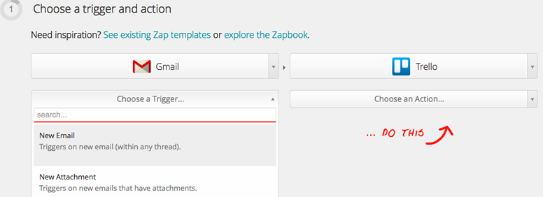 یکپارچه سازی با Trello: انجام عملیات یکپارچه سازی در این سرویس بسیار آسان است. برای نمونه اگر می خواهید حساب جیمیل را با Trello متصل سازید باید ابتدا عملیات یا هدفی را در جیمیل انتخاب کنید، برای مثال انتخاب «ایمیل جدید» و یا «فایلهای پیوست» می توانند از جمله این اهداف باشند، سپس در طرف دیگر شما باید یک Action را ایجاد کنید، برای مثال در سرویس Trello شما می تواند کارد یا برد جدیدی را اضافه نمایید.