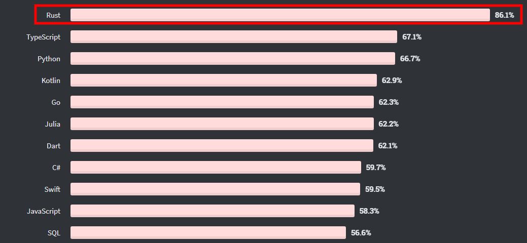 طبق نظرسنجی انجام شده Rust به مدت چهار سال متوالی محبوبترین زبان Stack Overflow بوده است. جالب است، نه؟ این محبوبیت عظیم نشان میدهد کسانی که فرصت استفاده از Rust را داشتهاند، عاشق آن شدهاند.