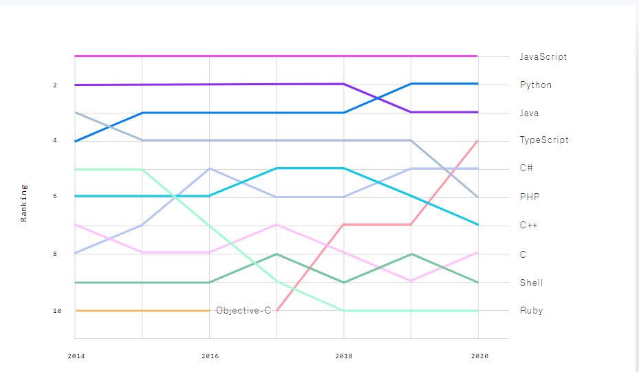 Typescript نامی شناخته شده است. از زمان انتشار آن در سال 2014، به سرعت در حال رشد است و جایگاه خود را در لیست 10 زبان برتر برنامه نویسی حفظ میکند.