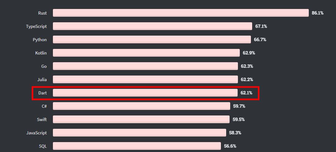 قبل از اینکه گوگل فلاتر را معرفی کند، دارت هیچ جایگاهی نداشت. با این حال از زمان معرفی فلاتر در Google I / O، دارت به عنوان جایگزینی برای react native مورد توجه شدید توسعه دهندگان موبایل قرار گرفت. توسعه دهندگانی که جاوااسکریپت را به عنوان زبان برنامه نویسی دوست نداشتند، دارت را به عنوان یک گزینه جایگزین پیدا کردند. همانطور که شرکتهای بزرگی مانند گوگل و علی بابا فلاتر را پذیرفتند، محبوبیت دارت به میزان قابل توجهی افزایش یافت.