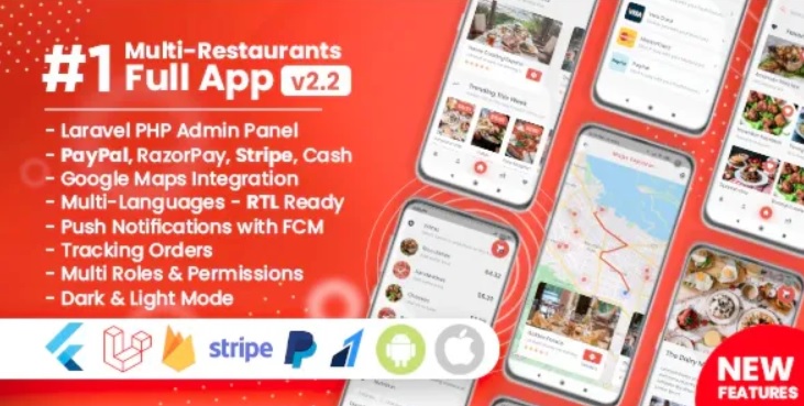 در اینجا یکی دیگر از قالبهای برنامه فلاتر در Codecanyon با قیمت 79 دلار موجود است. الگوی برنامه چندین سیستم مدیریت فهرست رستورانها را ارائه میدهد. ویژگی گوگل مپ برای نشان دادن رستورانها بر روی نقشه با راهنمایی آنها وجود دارد.