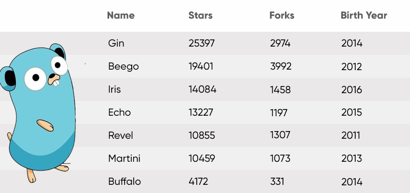 در این مطلب از وبسایت راکت قصد داریم در ارتباط با ۹ فریمورک مربوط به وب که توسط زبان Go توسعه داده شدهاند صحبت کنیم. میتوانید لیست ۷ مورد از این فریمورکها همراه با سال ایجاد، تعداد فورکها و استارها را در زیر مشاهده کنید.