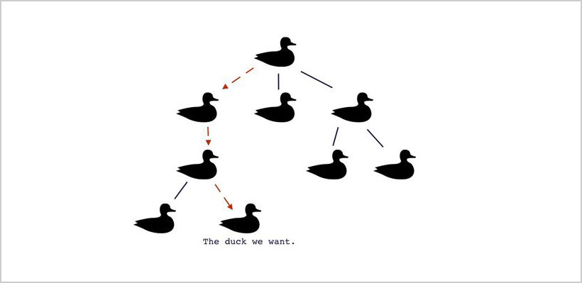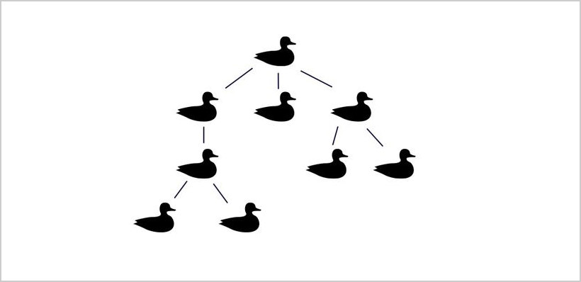 حال، شما میتوانید خط اردکها در بالا را بردارید، آن را عمودی کنید، و بگویید: «حال همه اردکها زیر یک اردک دیگر هستند.» پس آیا این یک ساختار درختی است؟ بله.