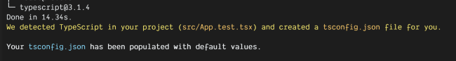 ما همچنین این اطلاعیه را دریافت خواهیم کرد: We detected TypeScript in your project**(src/App.test.tsx) and created a tsconfig.json file for you.**