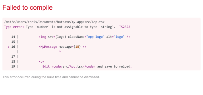 اگر خطاهای type به مانند این مورد وجود داشته باشند، React حتی کد را کمپایل نخواهد کرد: