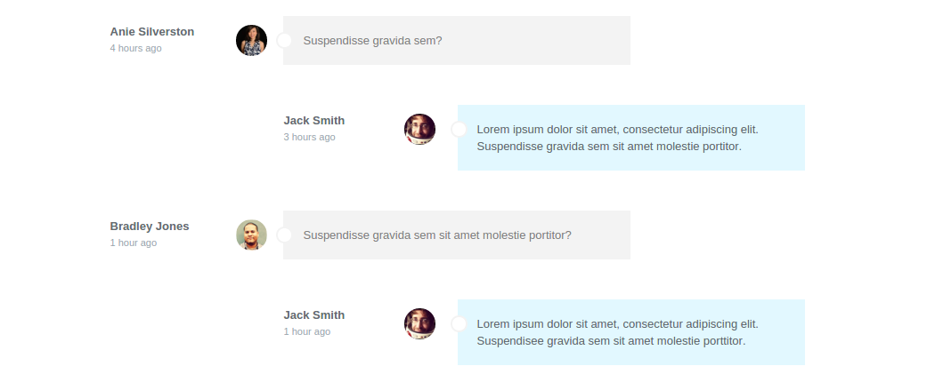 اگر با دقت به کد بالا نگاه کنید, متوجه خواهید شد که جدای از کلاس های مختلف, کد HTML نظرات کاربر با نظر نویسنده عملا یکسان هستند. تمام تفاوت هایی که در استایل و خروجی این دو وجود داره توسط CSS و با کلاس های user-comment و author-comment انجام میشه.