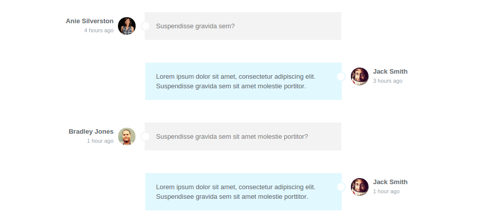 حالا نظر نویسنده در سمت راست قرار میگیره, اما ما میخواهیم عناصر داخل container رو بصورت برعکس داشته باشیم, طوری که پیام اول بیاد سپس آواتار و بعد از اون اطلاعات در سمت راست ظاهر بشه. بری انجام این کار ما از مزایای پراپرتی order استفاده می کنیم.