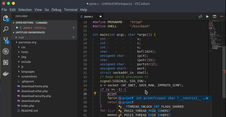 به صورت پیشفرض VSCodium در سیستم عامل Parrot OS موجود است. پس تنها کافیست از طریق دستور apt install آن را نصب کنید.