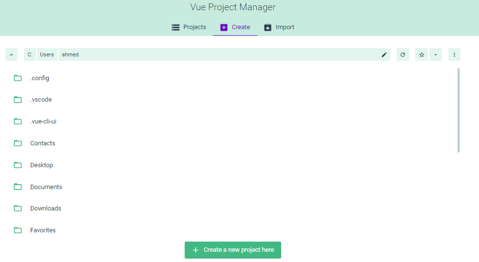 شما میتوانید یک پروژه جدید را از طریق تب Create ایجاد کنید.