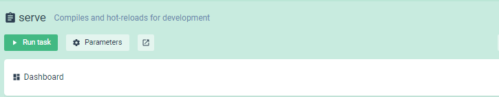 در قسمت tasks میتوانید کارهایی را مشاهده کنید که برای اجرای پروژه استفاده میشود. با کلیک روی دکمه serve و در نهایت دکمه Run task میتوانید پروژهتان را اجرا کنید: