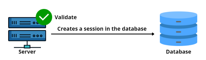 هنگامی که سرور درخواستی را به همراه کوکی دریافت میکند، شناسه سشن در کوکی را با سشن موجود در پایگاه داده مقایسه کرده تا کاربر را اعتبارسنجی نماید.