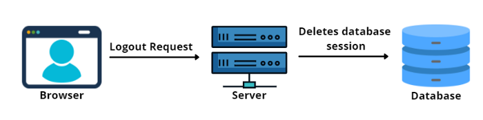 5. هنگامی که کاربر از سیستم خارج میشود (به اصطلاح Logout میکند)، سرور سشن را از پایگاه داده حذف میکند.