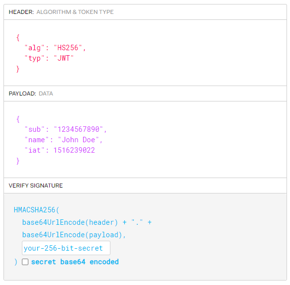 این توکن از 3 قسمت header، payload و signature (header.payload.signature) تشکیل شده که توسط . از هم جدا میشوند، همچنین میتوانید از وب سایت jwt.io برای تجزیه و تحلیل اطلاعات توکن استفاده کنید.