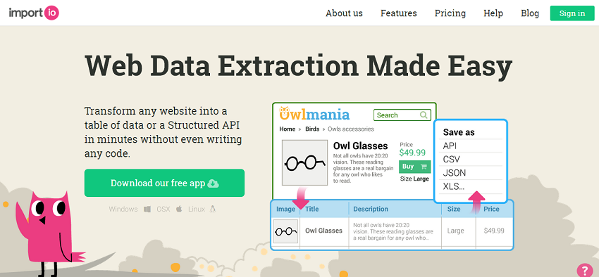 اگرچه کمی گران است، اما من واقعاً عاشق کاری هستم که آنها در Import.IO انجام میدهند. شرکتهایی که به دنبال انعطاف پذیری بیشتر و دسترسی الگوریتمی هستند، میتوانند با تیم فروش تماس بگیرند. البته شما میتوانید برای همیشه از نسخه رایگان این ابزار نیز لذت ببرید.