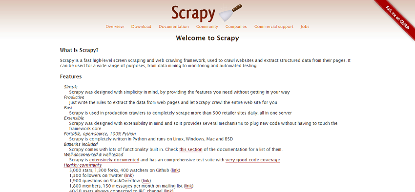 همانطور که گفتم، پایتون به خاطر سهولت در یادگیری و استفاده شدن در Web scraping بسیار مشهور است. Scrapy تمام ابزارها، اطلاعات و نمونههای لازم را در اختیارتان قرار میدهد تا به شما کمک کند طی چند دقیقه شروع به کار کنید. برای این کار باید پایتون و اصول پایهای خط فرمان را یاد گرفته باشید.